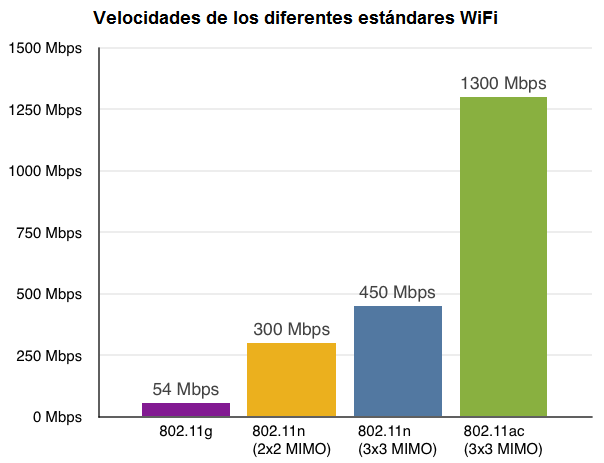 Y, ¿qué velocidades se pueden obtener? Pues la especificación marcaba inicialmente que combinando ambas bandas es posible alcanzar un máximo de tres flujos de datos de 433 Mbps, lo que supone un total de 1,3 Gbps, suficiente para que te dediques a descargar o ver en streaming películas Full HD o 4K sin problemas.